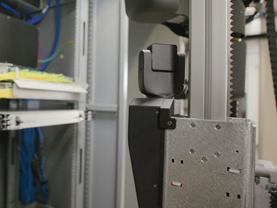 The **mobile base** is equipped with independent wheels and an autonomous navigation system, allowing efficient movement within the corridors of Points of Presence or Data Centers.